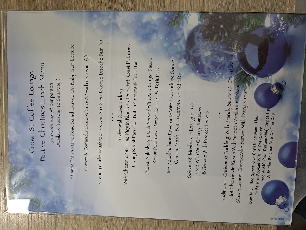 Crown Street Coffee Lounge offers a delightful and diverse menu that caters to a variety of tastes, making it a standout choice for both casual dining and special occasions. For those looking to indulge in a refreshing start to their day, the Bubbles and Tea Preorder is an intriguing option, offering a unique twist on a classic pairing. The Bruschetta provides a perfect balance of crunchy toast and fresh toppings, making it a popular starter. The drinks menu is equally impressive, with beverages like the comforting Cappuccino and Chocolate Macaroons, and the smooth Vanilla Latte, both of which pair beautifully with any of their sweet or savory options. For those with a sweet tooth, the Victoria Sandwich is a timeless classic, offering a light yet satisfying treat. The Eggs Benedict stands out as a hearty and flavorful choice for breakfast or brunch, perfect for those seeking a more substantial meal. For lunch, the Paella brings a touch of Mediterranean flair, bursting with flavor and fresh ingredients. Each dish at Crown Street Coffee Lounge is thoughtfully prepared, offering a memorable dining experience that blends tradition with innovation, ensuring a great time for all who visit.